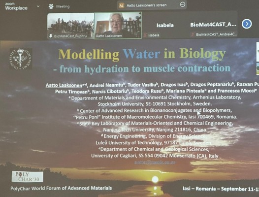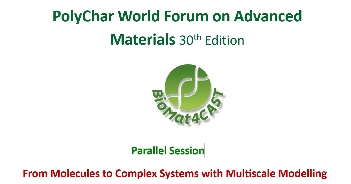 The BioMat4CAST team was co-organisator of the event and hosted also a special BioMat4CAST session: From Molecules to Complex Systems with Multiscale Modelling within the framework of the PolyChar World Forum on Advanced Materials - PolyChar 30 event organize in IntelCentre ICMPP.